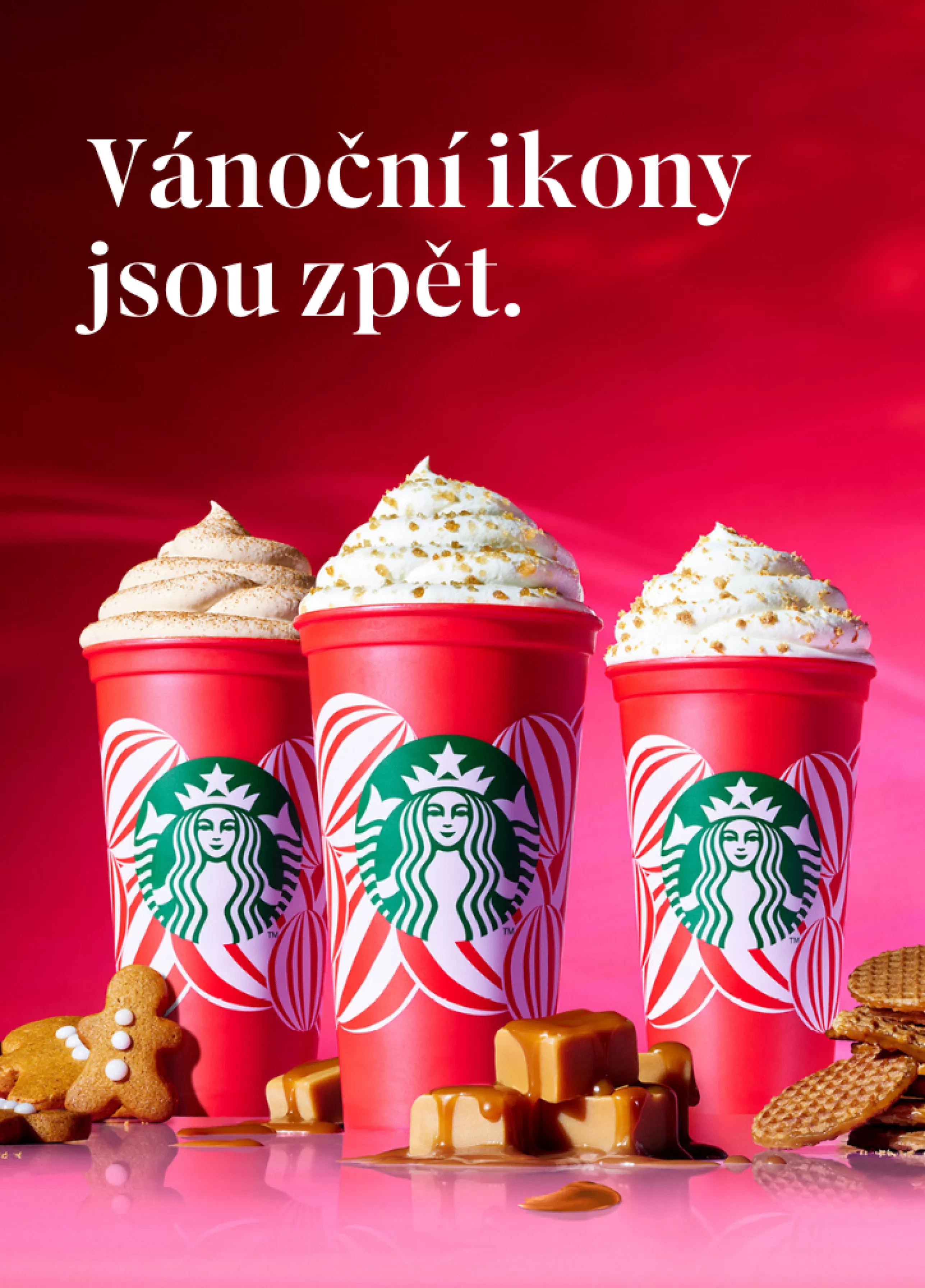 Sváteční sezóna je konečně tady a do kaváren Starbucks se vrací oblíbené vánoční trio nápojů, které každoročně přináší předvánoční atmosféru a radost z ikonických chutí. Toffee Nut Latte, Gingerbread Latte a Caramel Waffle Latte jsou zpátky, aby potěšily vaše smysly – ať už máte rádi horké nápoje plné chutí, které zahřejí nebo hledáte něco osvěžujícího. Všechny tři nápoje jsou dostupné teplé, studené, a také jako Frappuccino® Blended Beverage.